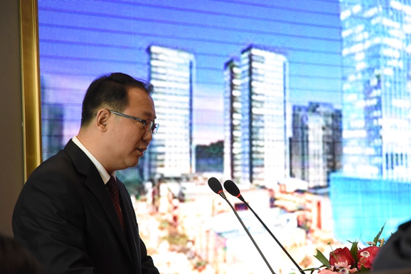 區(qū)領(lǐng)導向大家介紹美麗新城建設(shè)