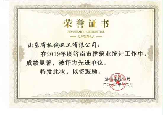 山東省機(jī)械施工有限公司被評為濟(jì)南市建筑業(yè)統(tǒng)計工作先進(jìn)單位