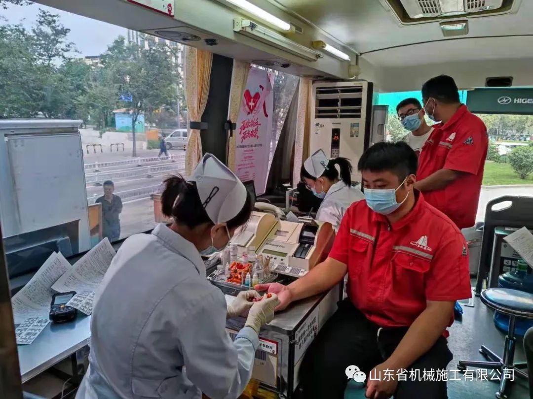 因受疫情及學(xué)生放假影響,省血液中心血庫庫存告急,在得知該情況后,山東機(jī)施立即動(dòng)員職工參加無償獻(xiàn)血活動(dòng)。作為常年參加公益、慈善活動(dòng)的董事長沈繽第一個(gè)報(bào)名,在沈董的大愛精神引導(dǎo)下員工們也紛紛報(bào)名參加。省血液中心對(duì)于公司員工的善舉表示衷心的感謝,并于8月2 8日安排采血車來到公司上門采血。
