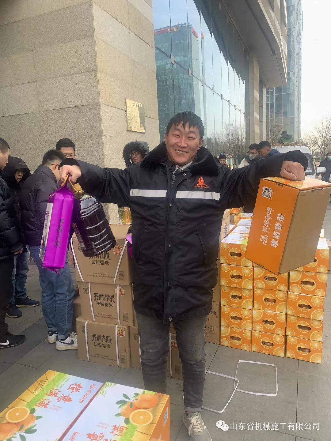 新春臨近,為感謝全體員工一年來的努力付出、關(guān)心職工生活、讓員工開開心度過一個歡樂、祥和的春節(jié),1月26日上午,山東省機械施工有限公司為每位員工發(fā)放了豐富的春節(jié)年貨,沉甸甸的年貨給全體員工帶來了新年的氣息。