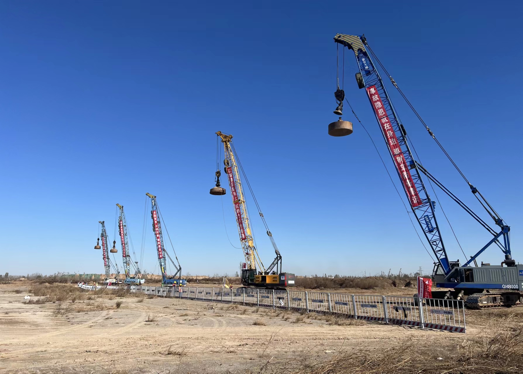機(jī)場項目建設(shè)正在如火如荼的進(jìn)行中,2023年度山東省機(jī)械施工有限公司巖土分公司先后參與承建了北京金港場道有限公司承接的濟(jì)南遙墻機(jī)場二期東飛行區(qū)地基處理項目、棗莊機(jī)場地基處理項目,在項目施工管理中,分公司秉承“建設(shè)單位滿意是我們的工作目標(biāo)”、“以誠信品質(zhì)至上,筑四方天地根基”的工作理念,以公司多年的施工經(jīng)驗為技術(shù)支持,配合業(yè)主完成了強(qiáng)夯試驗區(qū)工作,為后續(xù)設(shè)計院提供了準(zhǔn)確的數(shù)據(jù)支撐。
