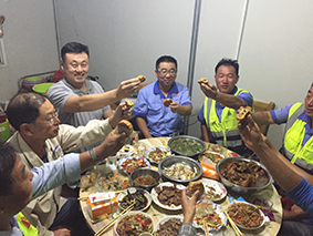 2018924日,中國(guó)傳統(tǒng)節(jié)日“中秋節(jié)”,節(jié)日期間公司沈繽董事長(zhǎng)及領(lǐng)導(dǎo)班子各領(lǐng)導(dǎo)成員,分赴各個(gè)施工一線現(xiàn)場(chǎng),慰問節(jié)日期間仍然堅(jiān)守崗位的一線員工,給職工們送去了祝福、送去了關(guān)愛及節(jié)日慰問品,各位領(lǐng)導(dǎo)與現(xiàn)場(chǎng)一線員工同吃、同樂、共同度過(guò)了一個(gè)歡樂且十分有意義的“歡樂中秋”!