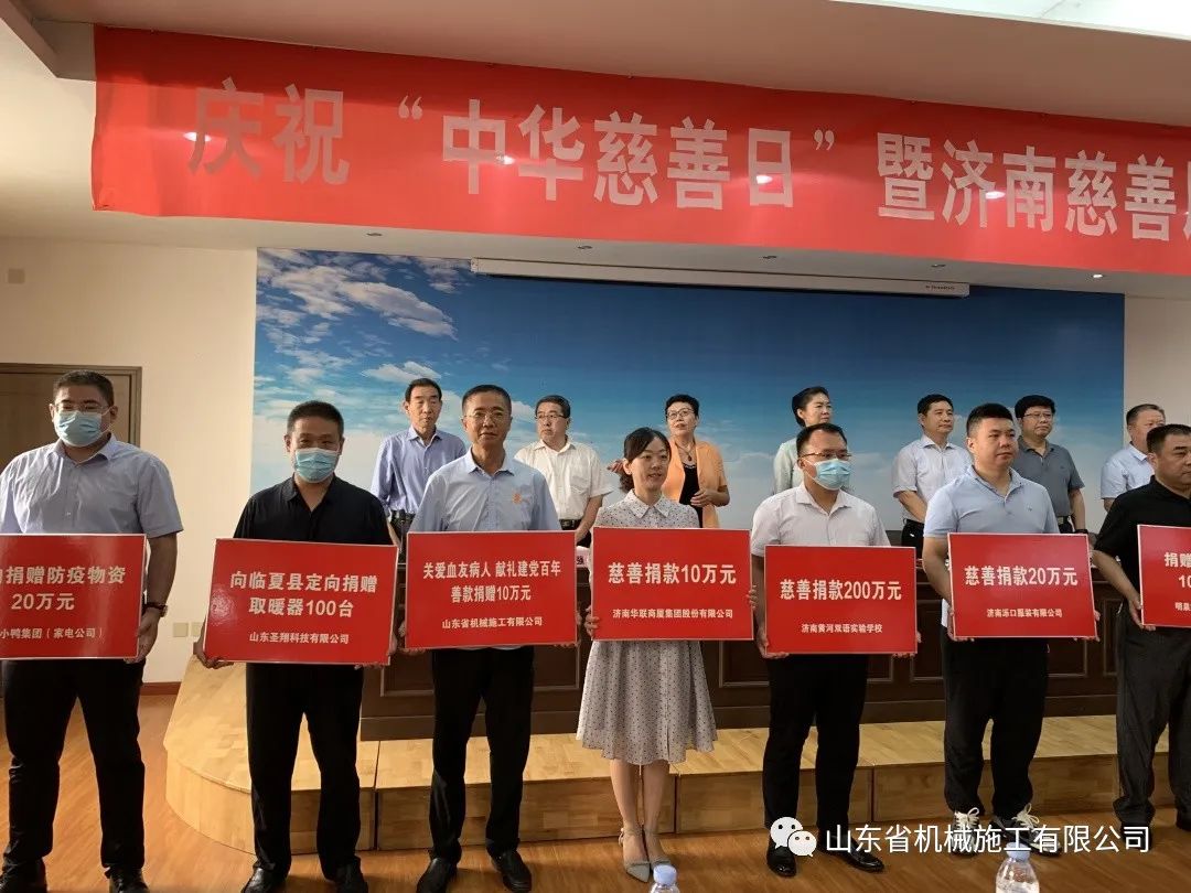 值第六個(gè)“中華慈善日”來(lái)臨之際,為深入宣傳《慈善法》、《山東省慈善條例》,培育社會(huì)慈善意識(shí),展示濟(jì)南慈善事業(yè)發(fā)展成果,濟(jì)南慈善總會(huì)于2021年9月3日上午9:30,在濟(jì)南福利總廠院內(nèi)舉辦了慶祝第六個(gè)“中華慈善日”暨濟(jì)南慈善展室啟動(dòng)活動(dòng),并組織愛(ài)心企業(yè)現(xiàn)場(chǎng)捐贈(zèng)和困難家庭大學(xué)新生救助。作為槐蔭區(qū)愛(ài)心企業(yè)代表,山東省機(jī)械施工有限公司黨委書(shū)記孫宗義代表公司參加了活動(dòng)。