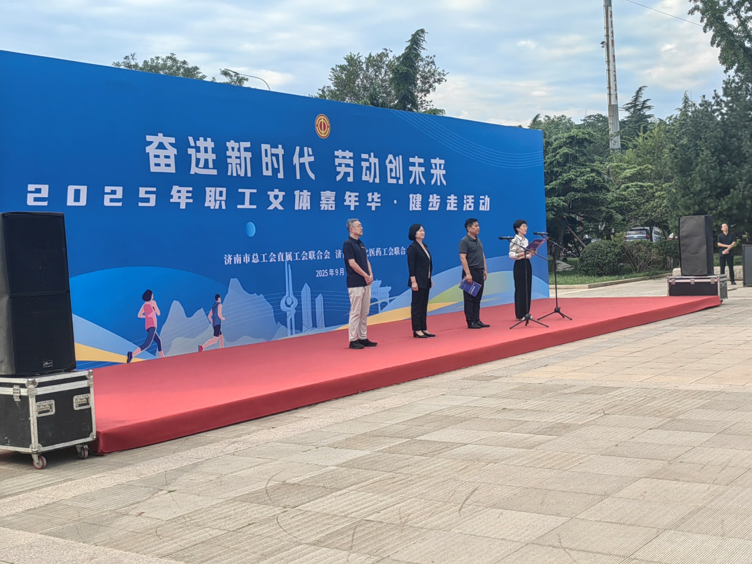 9月26日上午,濟(jì)南市千佛山風(fēng)景區(qū)清風(fēng)送爽、綠意盎然,“2025年職工文體嘉年華·健步走活動(dòng)”在此盛大啟幕。本次活動(dòng)共有直屬會(huì)32支代表隊(duì)338名運(yùn)動(dòng)愛好者參加。濟(jì)南市總工會(huì)黨組副書記、副主席申世平;濟(jì)南市總工會(huì)綜合事務(wù)服務(wù)中心主任、直屬工會(huì)聯(lián)合會(huì)主席張?jiān)苼淼阮I(lǐng)導(dǎo)參加活動(dòng)并致辭。
